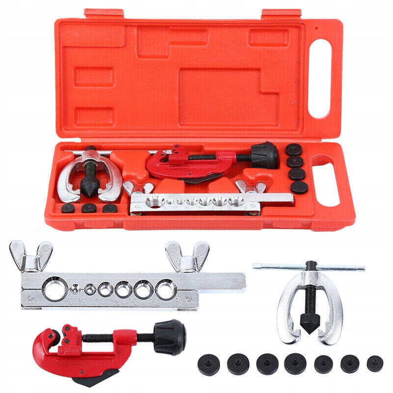 Набір для обтиску гальмівної та паливопроводів. Підходить для різання та розширення мідних, латунних і алюмінієвих трубок і кабелів із товщиною стінок до 1 мм.
