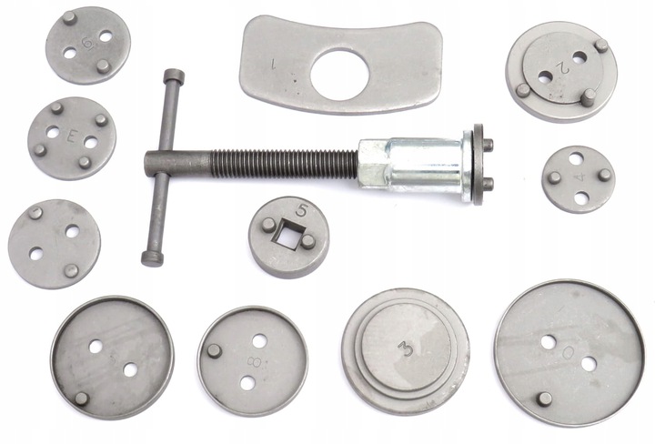 - Набір з 12 предметів для реверсування/віджиму поршнів у циліндрах гальмівної системи, необхідний при ремонті автомобілів, обладнаних дисковими гальмами.
