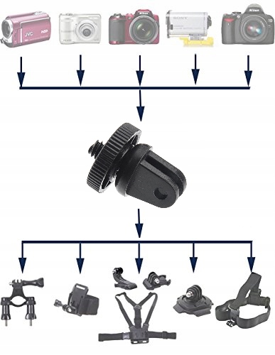 Адаптер дозволяє прикріпити традиційну камеру або відеокамеру, встановлену на різьбі 1/4" на кріпленнях, розроблених спеціально для камер GoPro!