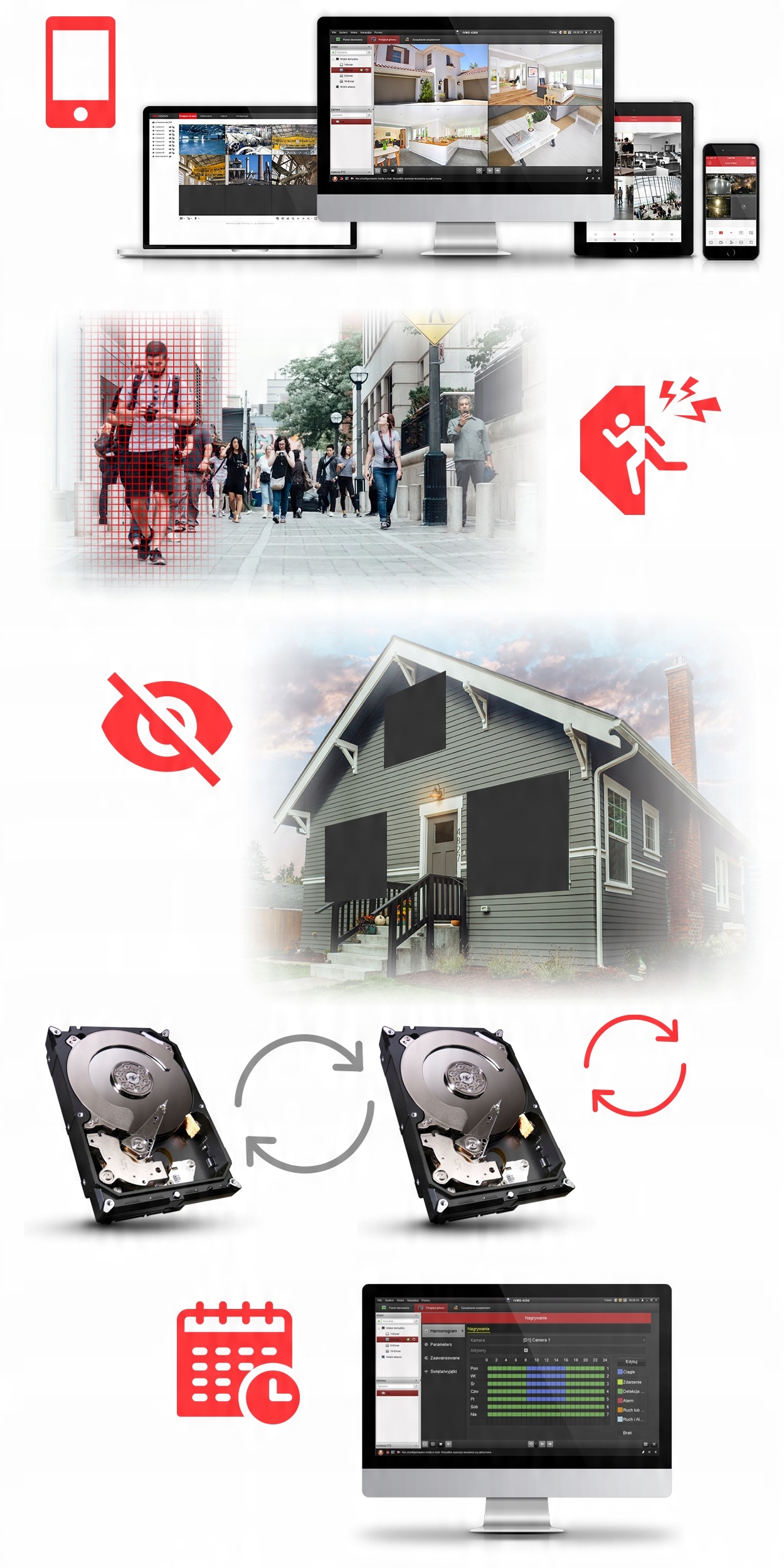 Якщо ми не хочемо, щоб вибраний фрагмент кадру був на записах, вибрану частину можна закрити електронно створеною зоною конфіденційності. Завдяки цьому ви можете обмежити зону запису, а моніторинг працюватиме відповідно до регламенту GDPR.