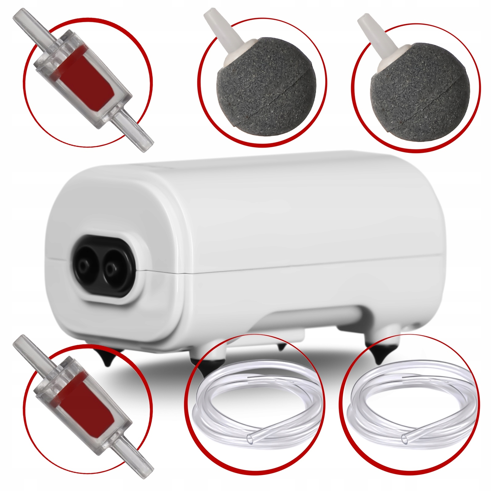 У цьому наборі ви знайдете все необхідне для аерації води в акваріумі. Немає необхідності купувати додаткові елементи.