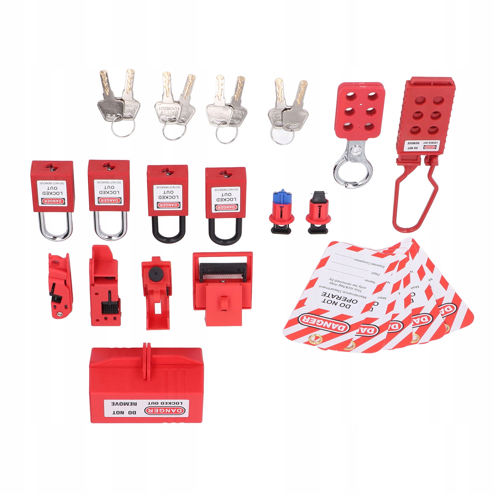2. Легке керування електрообладнанням: цей набір замків включає 4 навісні замки Loto та 6 замків автоматичного вимикача різних розмірів. Після того, як електрообладнання заблоковано, можна використовувати 6 отворів для багатофункціонального замка, щоб ефективно запобігти несанкціонованому доступу до електрообладнання, забезпечуючи таким чином його безпеку.