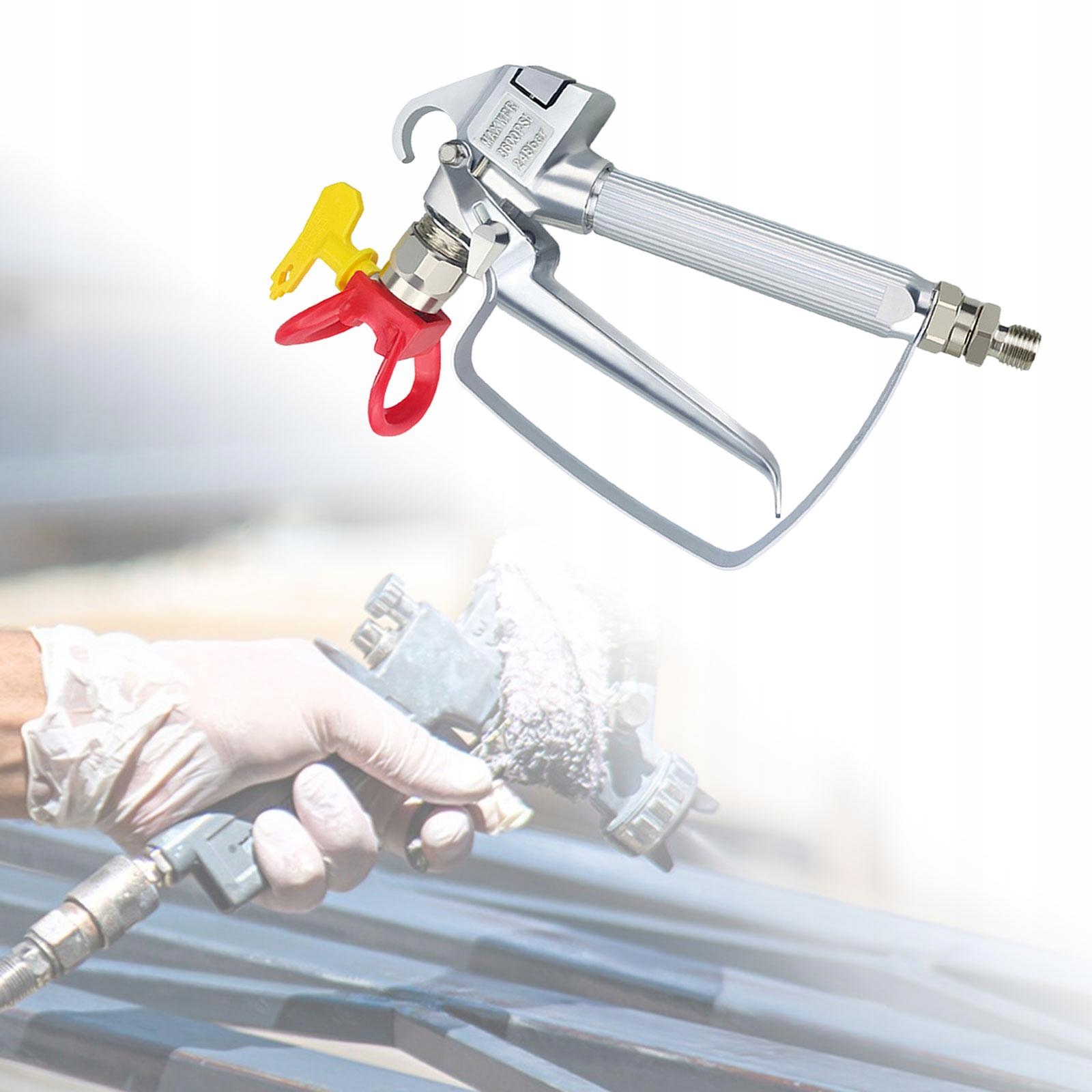 Безповітряний розпилювач фарби (тримач сопла входить у комплект) виготовлено з алюмінієвого сплаву, що забезпечує тривале використання та надійність.