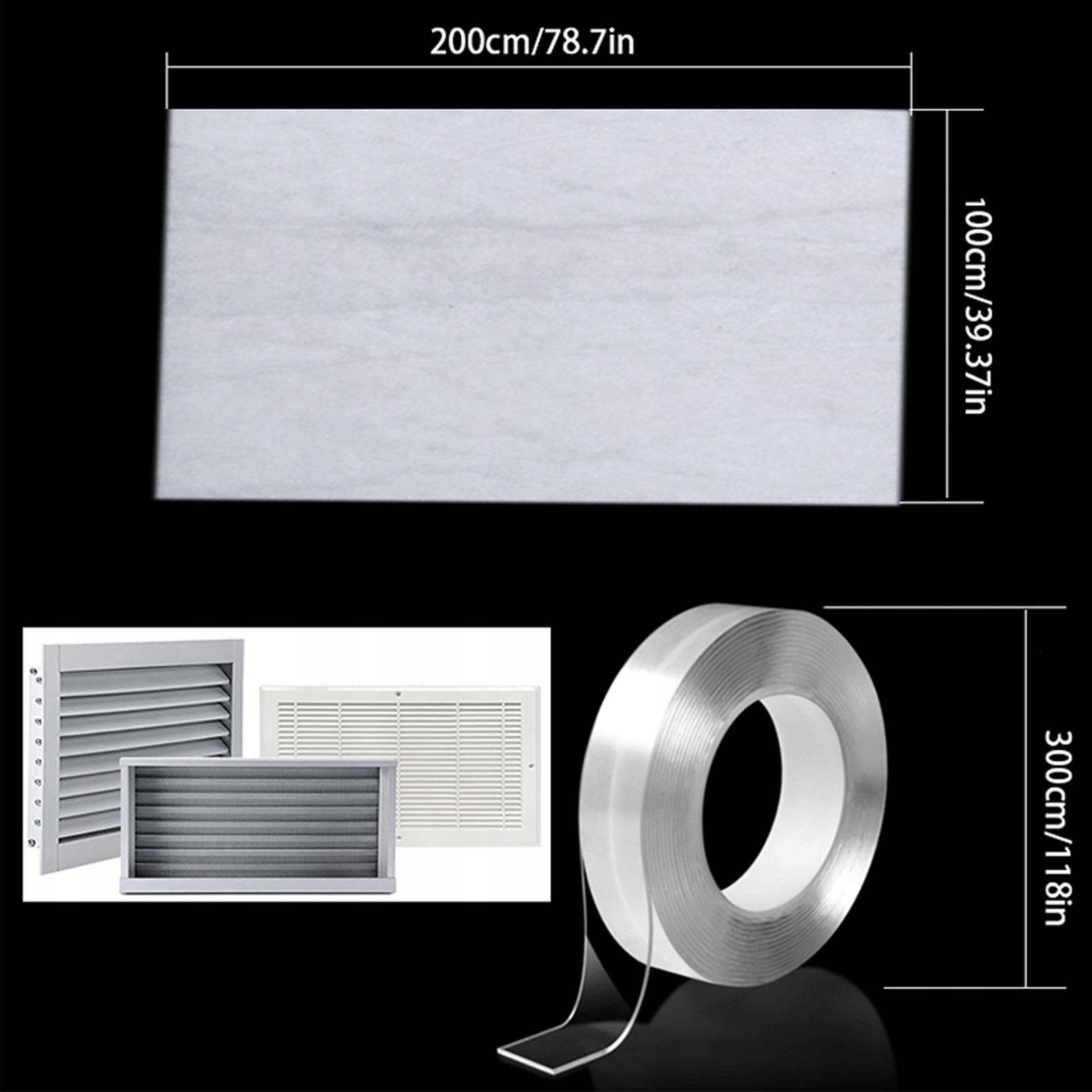 ✨ Великий розмір і легке встановлення: у комплект входить бавовняний фільтр розміром 200 см x 100 см і двостороння безшовна монтажна стрічка довжиною 300 см. Може охоплювати понад 36 стандартних вихлопних отворів, а також більші спеціальні.