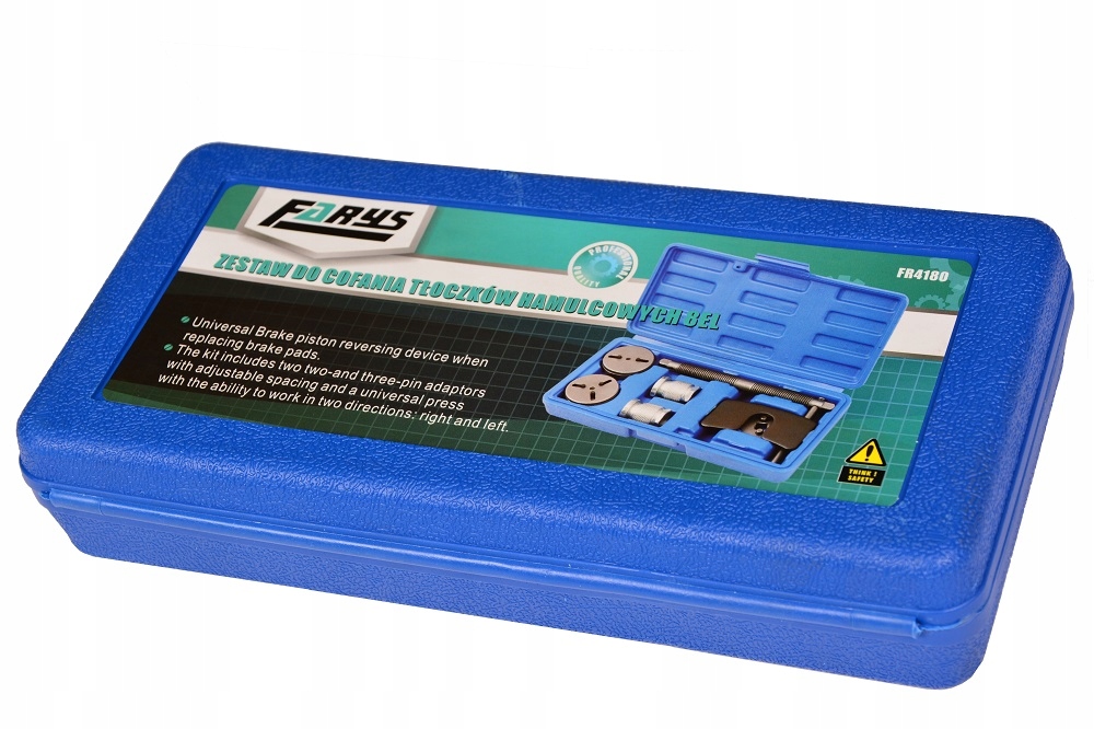 У набір входять адаптери, адаптовані до розміру гальмівних поршнів, які використовуються в більшості легкових автомобілів, що випускаються на європейському та азіатському ринках:
