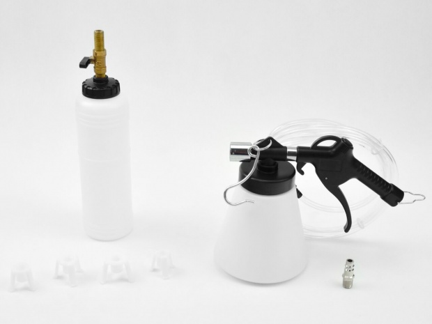 Універсальний комплект для прокачування гальмівних систем. Цей тип пристрою дозволяє одній людині заправляти та прокачувати гальмівну систему за допомогою тиску компресора.