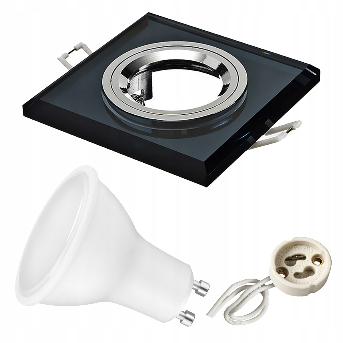 Набір квадратних галогенних скляних світильників, фіксований чорний + світлодіодна лампа 5,5 Вт + керамічний цоколь GU10