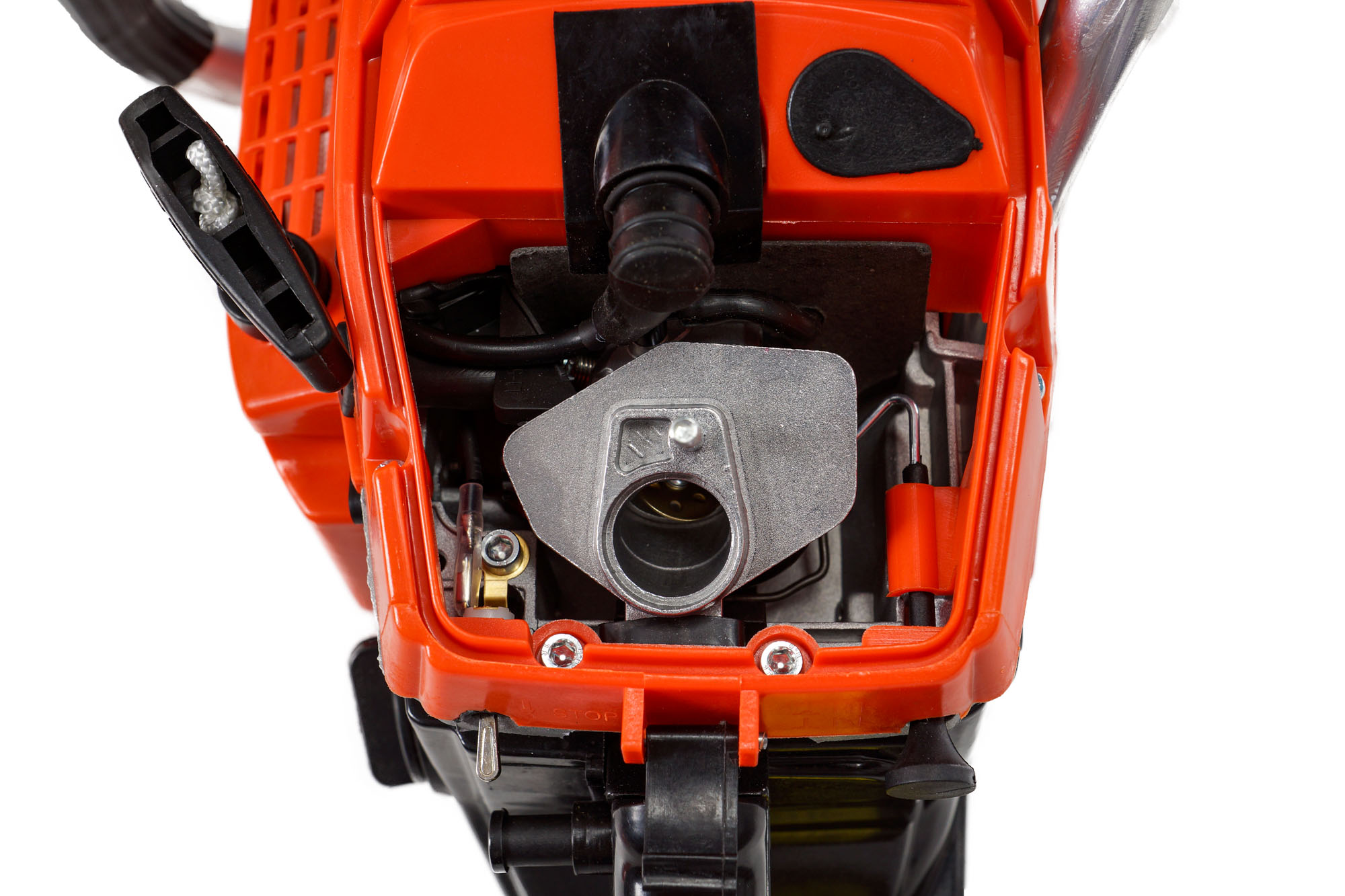 Один із найміцніших на ринку і, перш за все, дуже стабільний і простий у використанні, довговічний і потужний бензопила 2.7KM. Пила має шарикопідшипникову двосторонню напрямну. Ідеально підходить для розпилу всіх видів деревини (як дров, так і садових), зрізання та обрізки гілок. Завдяки високій потужності пила характеризується високою ефективністю та безпекою завдяки запобіжному гальму та великому щитку для рук.