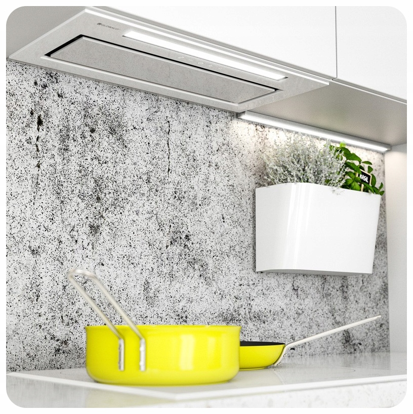 Вбудована витяжка Silentio 60.2 White чудово виглядає на кухнях, де переважає яскрава скандинавська палітра кольорів. Його компактні розміри дозволяють легко сховати його в кухонній шафі.
