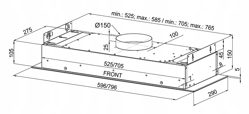 Вбудована кухонна витяжка Silentio 60.2 не має двигуна. Він призначений для роботи із зовнішнім двигуном, розташованим на горищі або поза будівлею: TW1.2, TW2.1, TW3.1 і TZ1.1