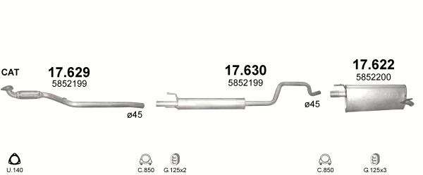 На даному аукціоні продам комплект сайлентблоков (середина + торець) №1. 17 622 + 17 630 + хомути кріплення для Opel Meriva в бензинових двигунах потужністю 1.4i-16V потужністю 66KW/90HP + 1.6 power 64KW/87KW + 1.6i-16V power 74KW/100HP, моделі 2003-2010 р.в. Додатково пропоную труби з гнучкими з’єднувачами (різні в залежності від пропускної здатності) та монтажні аксесуари (ущільнювачі, гумові підвіси, монтажну пасту. Ці глушники виготовлені з листового алюмінію з обох сторін і виробництва польського виробника Polmostrow або, альтернативно, Ferroz. Продукт має допуски TUV і сертифікат ISO 9001:2001 +Pimot і звукоізоляцію на основі скловолокна, що зберігає заводський звук