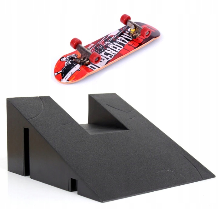 Набір складається з фінгерборда (скейтборду) і чорна рампащо дозволяє вам виконувати багато привабливих акробатичних номерів. На інших наших аукціонах доступні інші варіанти пандусів, які можна комбінувати для створення більших модулів.