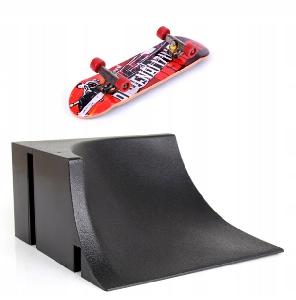 Набір складається з фінгерборда (скейтборду) і чорна рампащо дозволяє вам виконувати багато привабливих акробатичних номерів. На інших наших аукціонах доступні інші варіанти пандусів, які можна комбінувати для створення більших модулів.