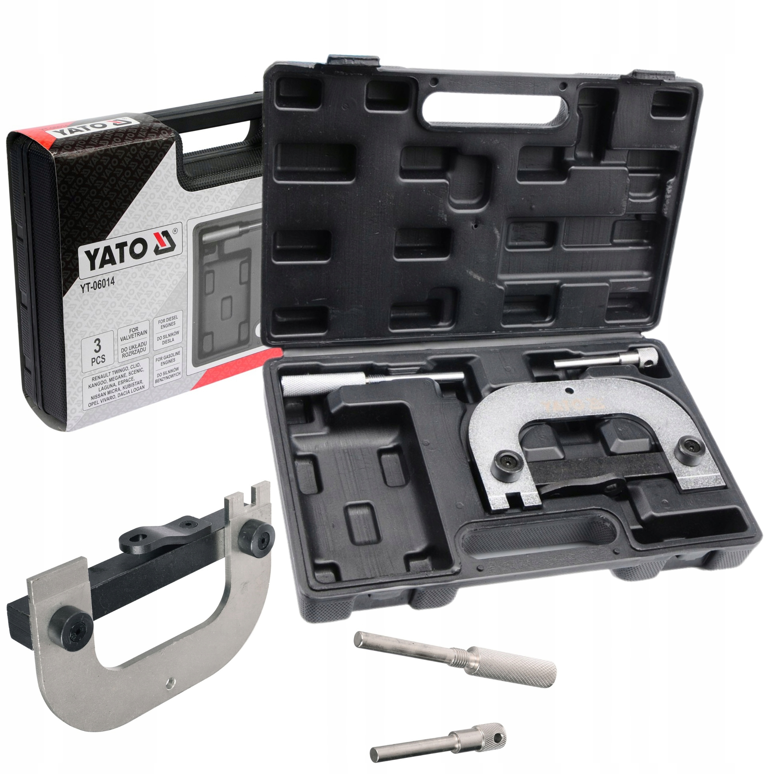Професійний набір для обслуговування ГРМ із 3 частин. Присвячено автомобілям Renault, для дизельних і бензинових двигунів.