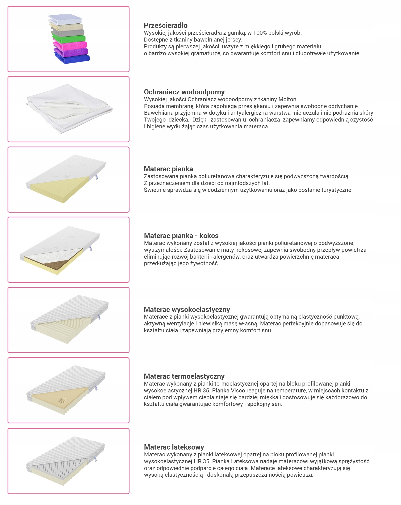 - шухляди адаптовані до моделей ліжок: MIX, Junior, Diego.