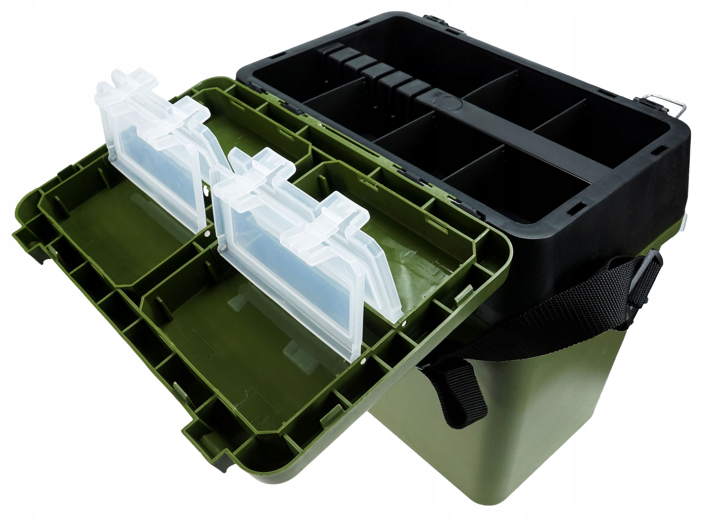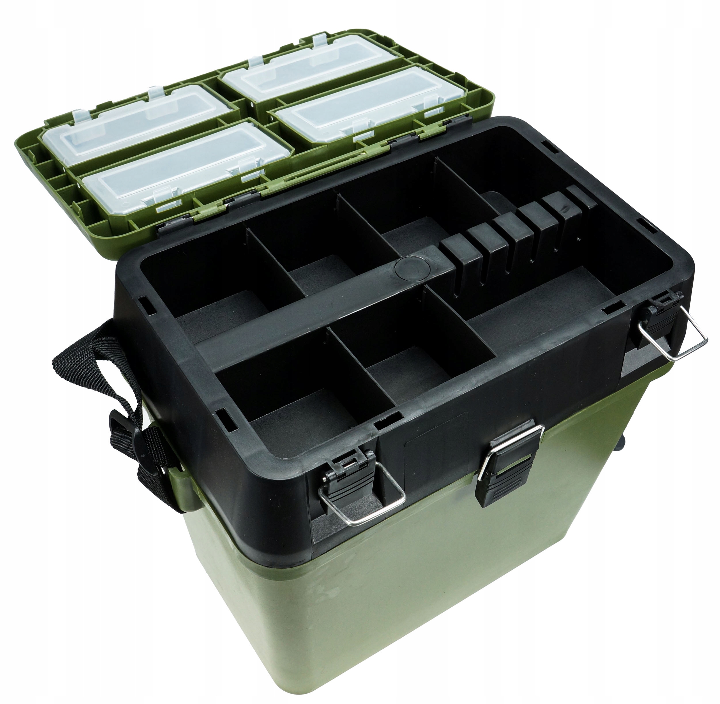 НОВИЙ Рибальський ящик HOKKAIDO з пінопластовим сидінням. У створці, що піднімається вгору, розташовані чотири ящики, що закриваються на засувки для дрібного рибальського спорядження та приманок, у нижній частині кришки розташовані касети з відділеннями для аксесуарів середнього розміру.