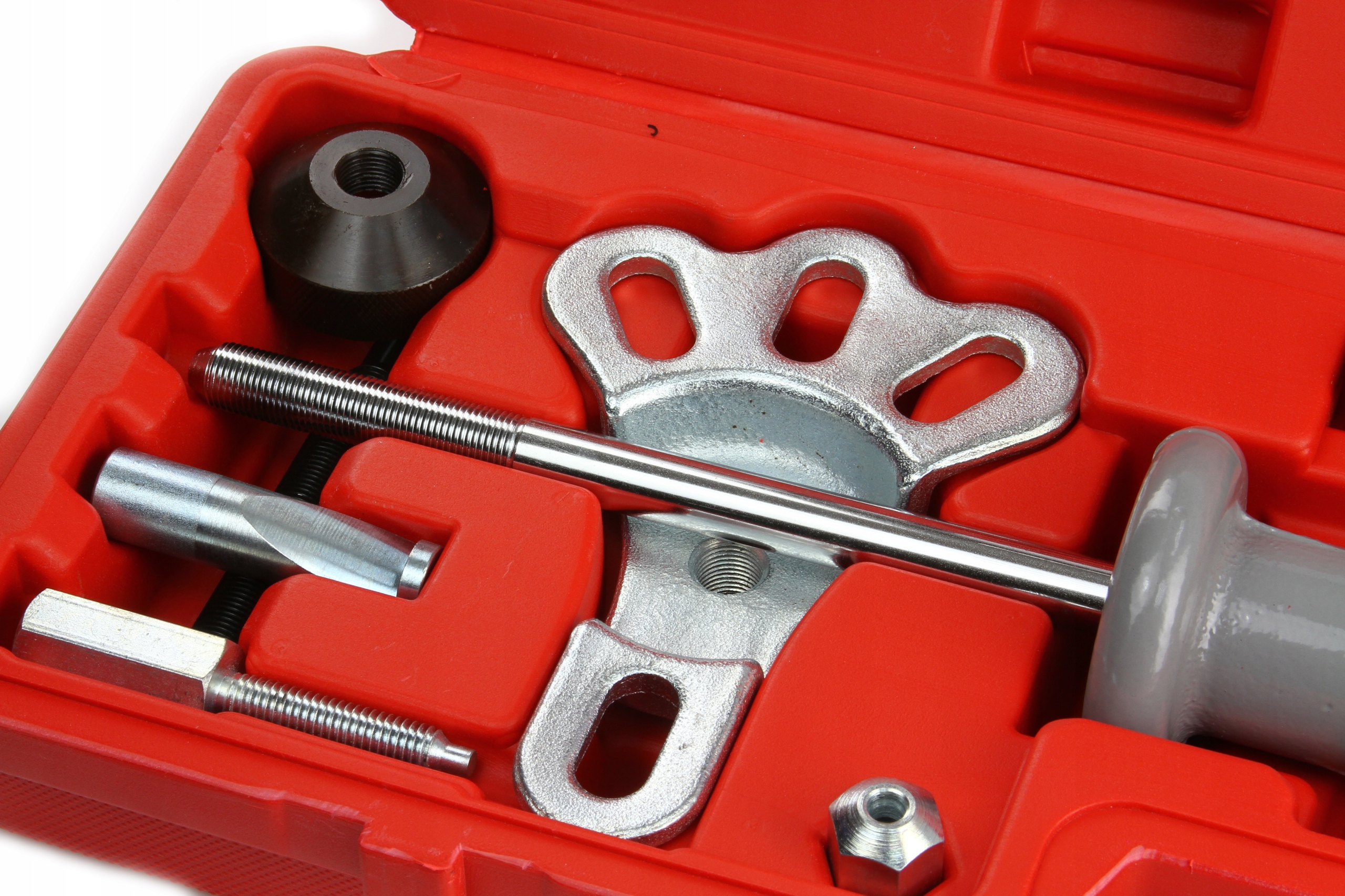 Універсальний інерційний знімач для маточини та підшипників також можна використовувати для демонтажу багатьох інших компонентів шасі, виробник подбав про те, щоб його обладнання мало виняткові робочі параметри. Надійне виготовлення набору та практична валіза забезпечують його функціональність і тривалий термін служби.