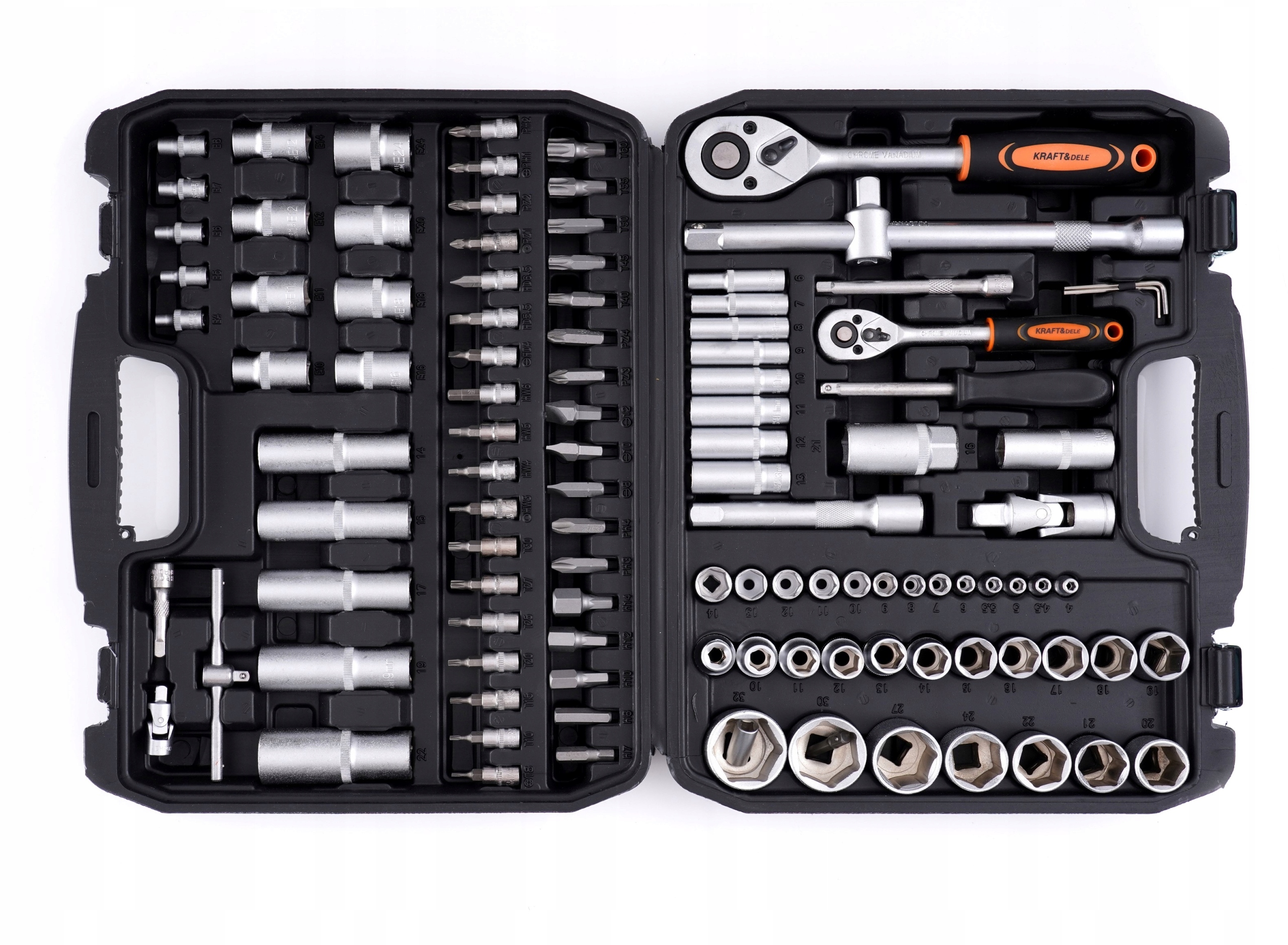 Надзвичайно великий набір інструментів Kraft&Dele із символом KD10835. Інструменти характеризуються надійною обробкою, міцними матеріалами та зручною валізкою, у якій кожен інструмент має своє місце.