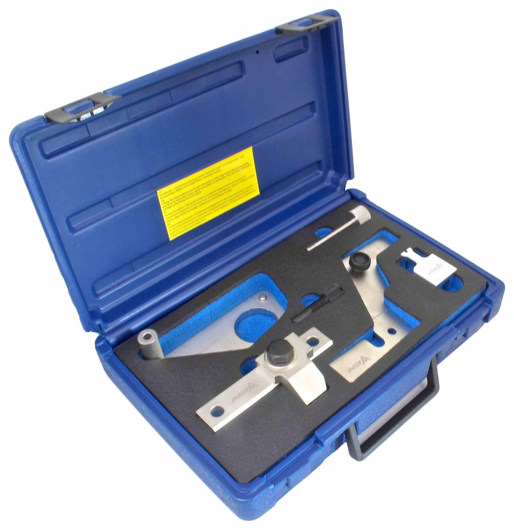 В набір входять: фіксатор колінчастого вала, пластина розподільного вала, інструмент для центрування колінчастого вала, пластина для центрування колінчастого вала з направляючими та штифтами, фіксатор маховика.