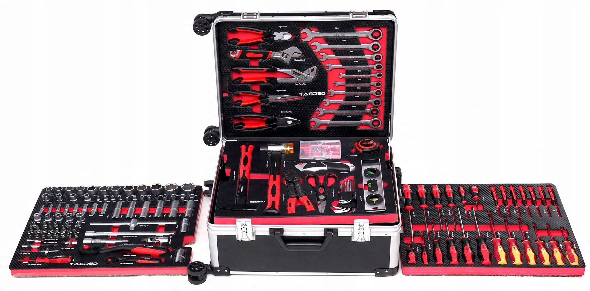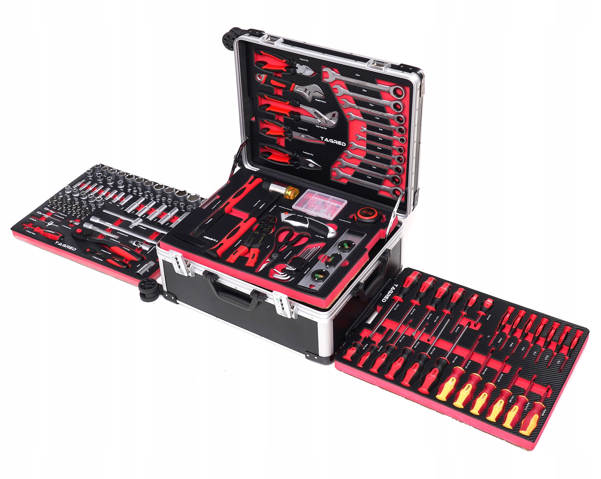 Валіза має аж чотири ергономічні знімні ящики, що полегшує впорядкування інструментів і дозволяє швидко знаходити потрібний вам предмет. Кожна шухляда призначена для зберігання різних інструментів, від гайкових ключів до молотків, що робить футляр універсальним і компактним. Ергономічні ручки та міцні замки гарантують легке відкривання та закривання валізи та безпечне зберігання інструментів.