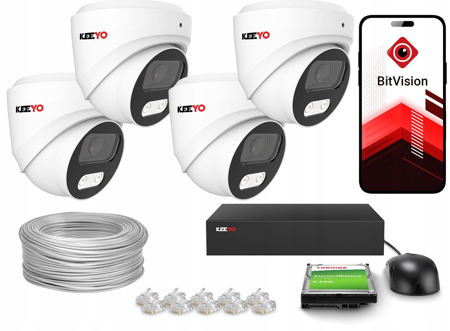 KEEYO 4x LV-V-IP5M25DF-B-II IP моніторинговий комплект 5 Мпікс, ІЧ 25 м, Аудіо AI