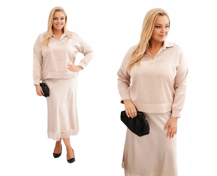 КОМПЛЕКТ ЖІНОЧИЙ PLUS SIZE АТЛАСНИЙ БЛИСК МЕРЕЖИВО ВІСКОЗА БЕЖЕВИЙ