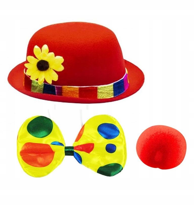 НАБІР: ДОВШИЙ БОУЛІНГ З КВІТКОЮ + НОСОМ + КОЛЬОРОВИЙ МЕТЕЛИК - КЛОУН / КЛОУНІН / ВЕЧІРКА
