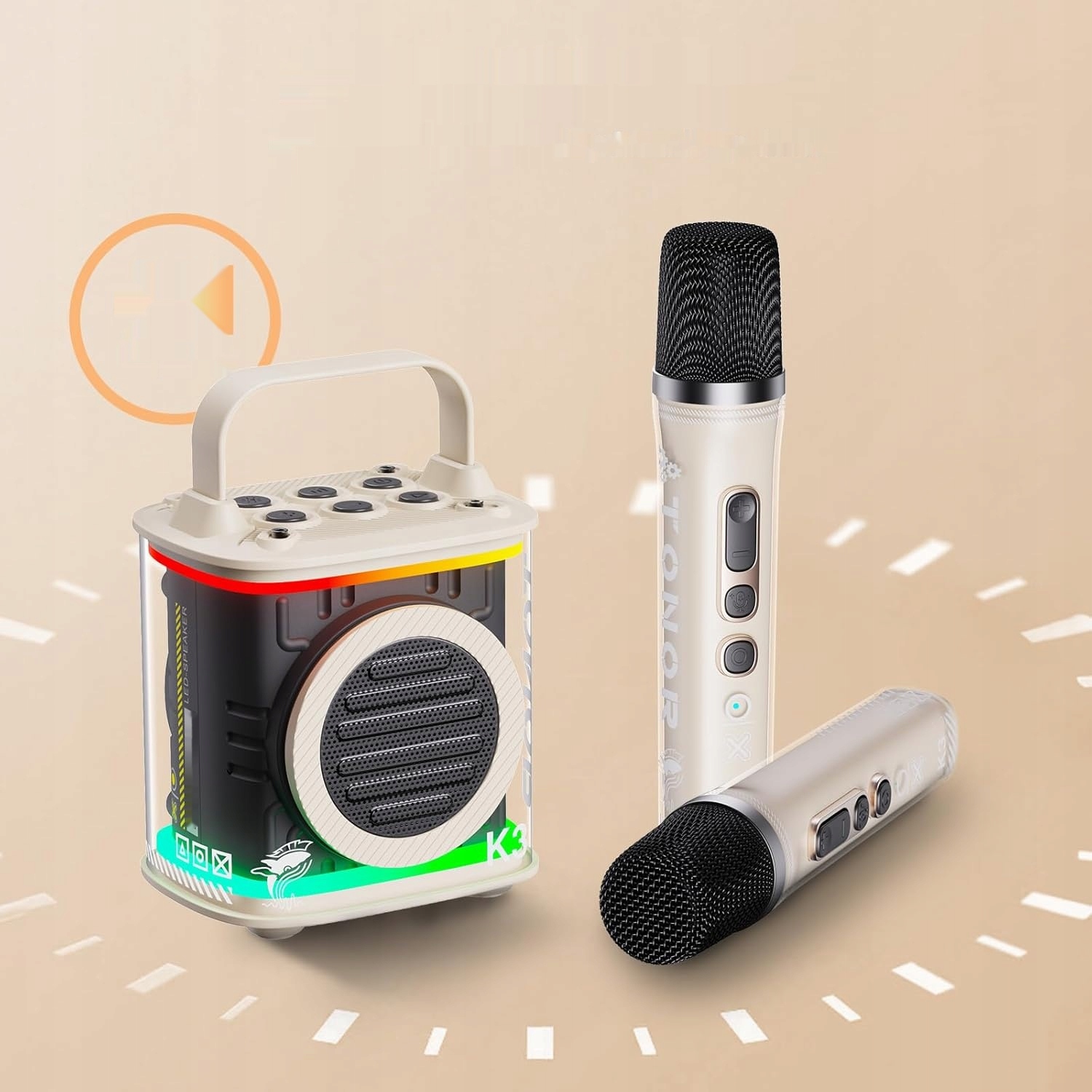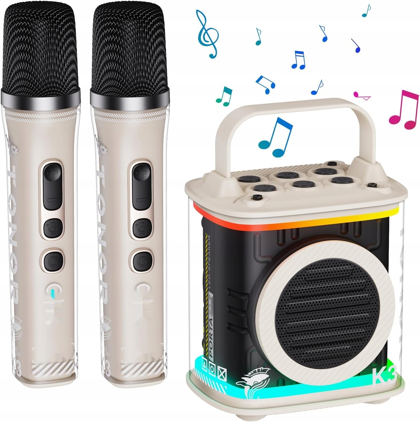 Караоке встановив світлодіодний динамік Bluetooth Tonor, 2 мікрофони, бежеві.