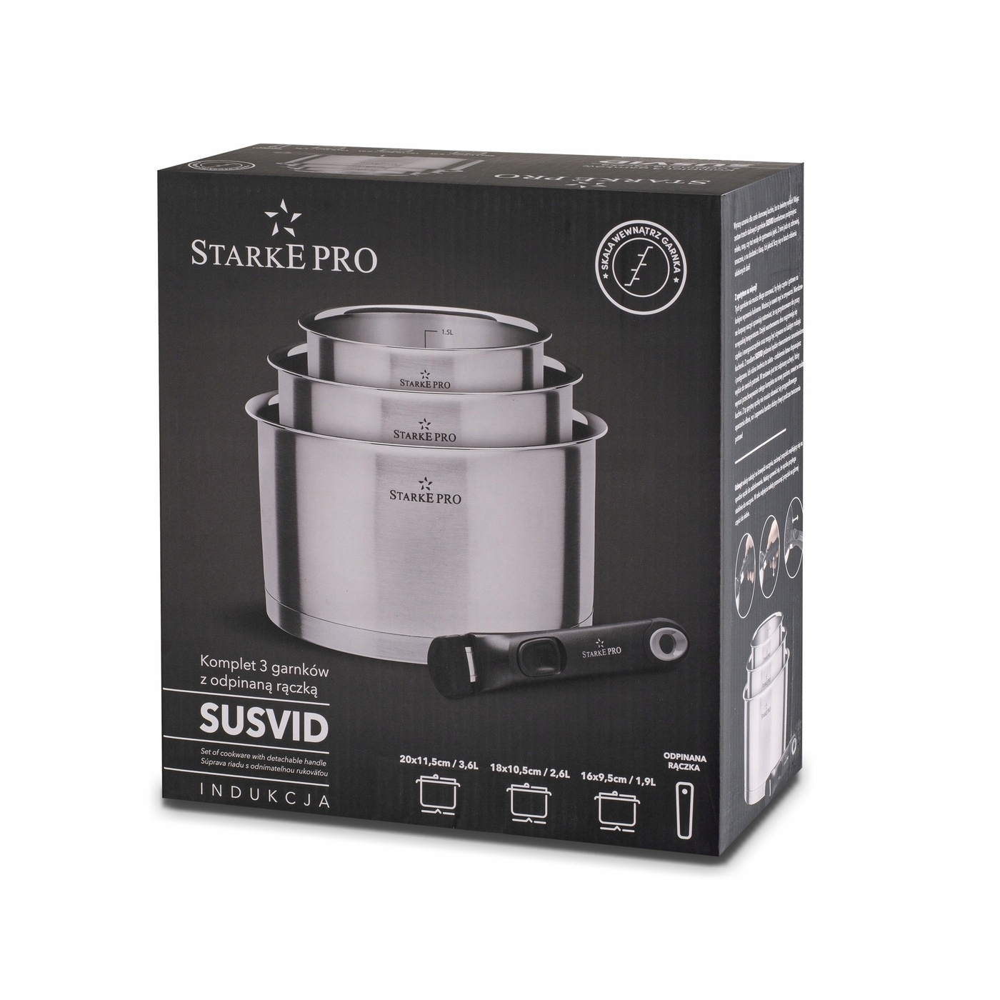 Набір горщиків 3x Знімаюча ручка Індукція етап Газ Starke Pro Susvid