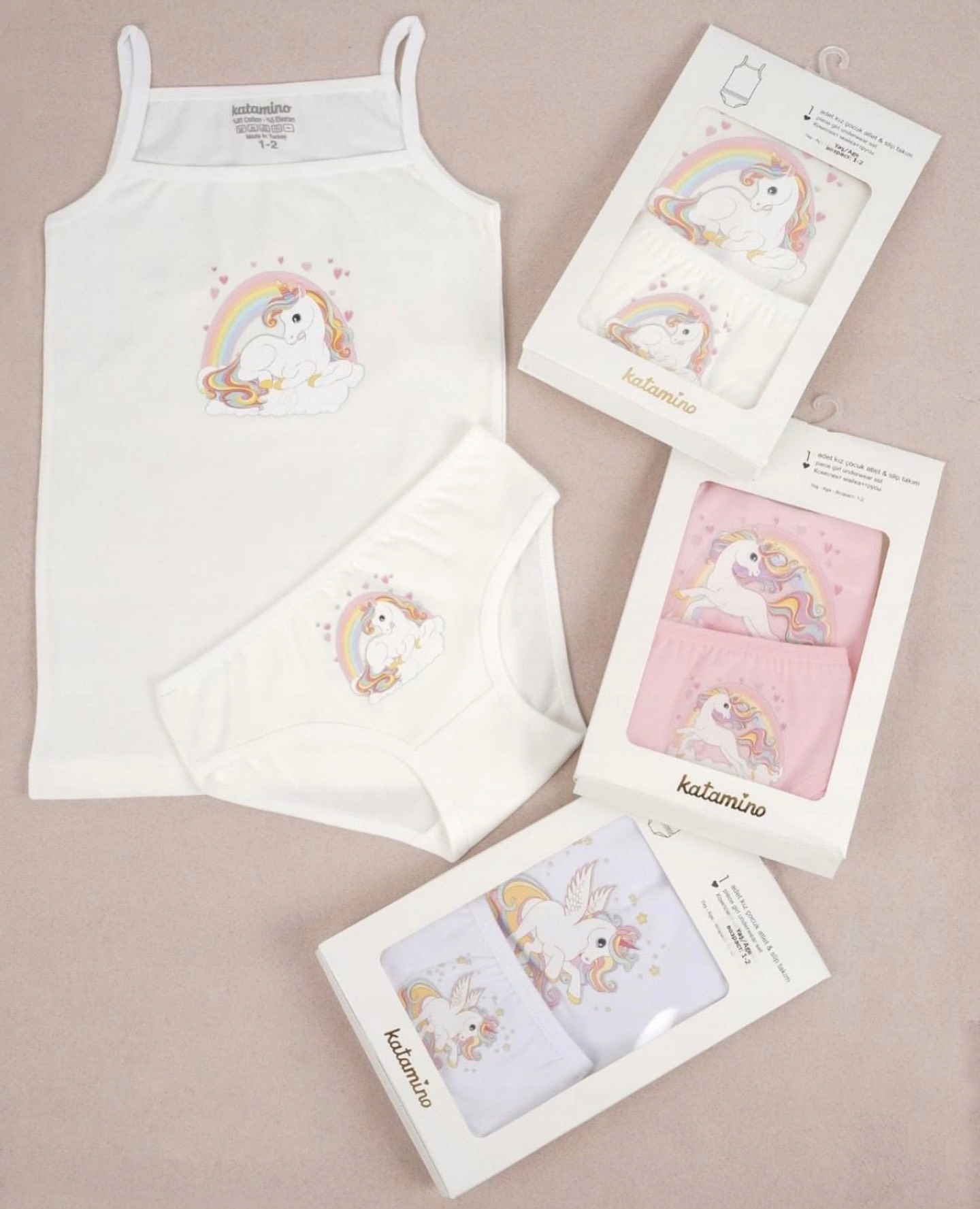 КОМПЛЕКТ КАТАМІНО ФУТБОЛКА ТРУСИКИ ЄДИНОРІГ 98-104