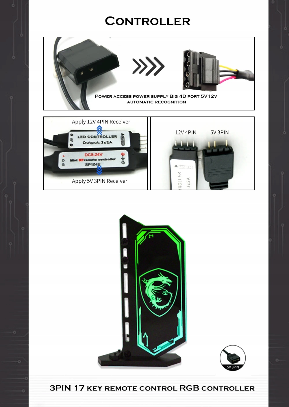 Комплект керування 5 В VGA Кронштейн графічного процесора Вертикальний кронштейн Підставка графічного процесора Вентилятор 12 В