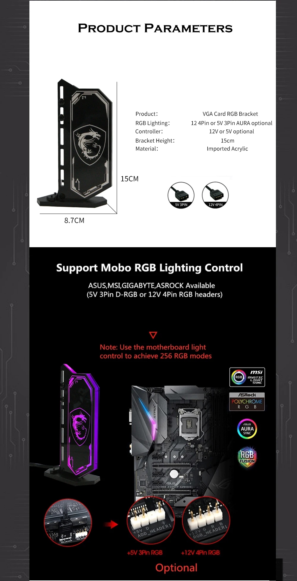 Вертикальна підставка для картки VGA GPU, 12 В RGB або 5 В A-RGB, багатостильова підсвічена графіка, підтримка M/B SYNC, безкоштовне налаштування