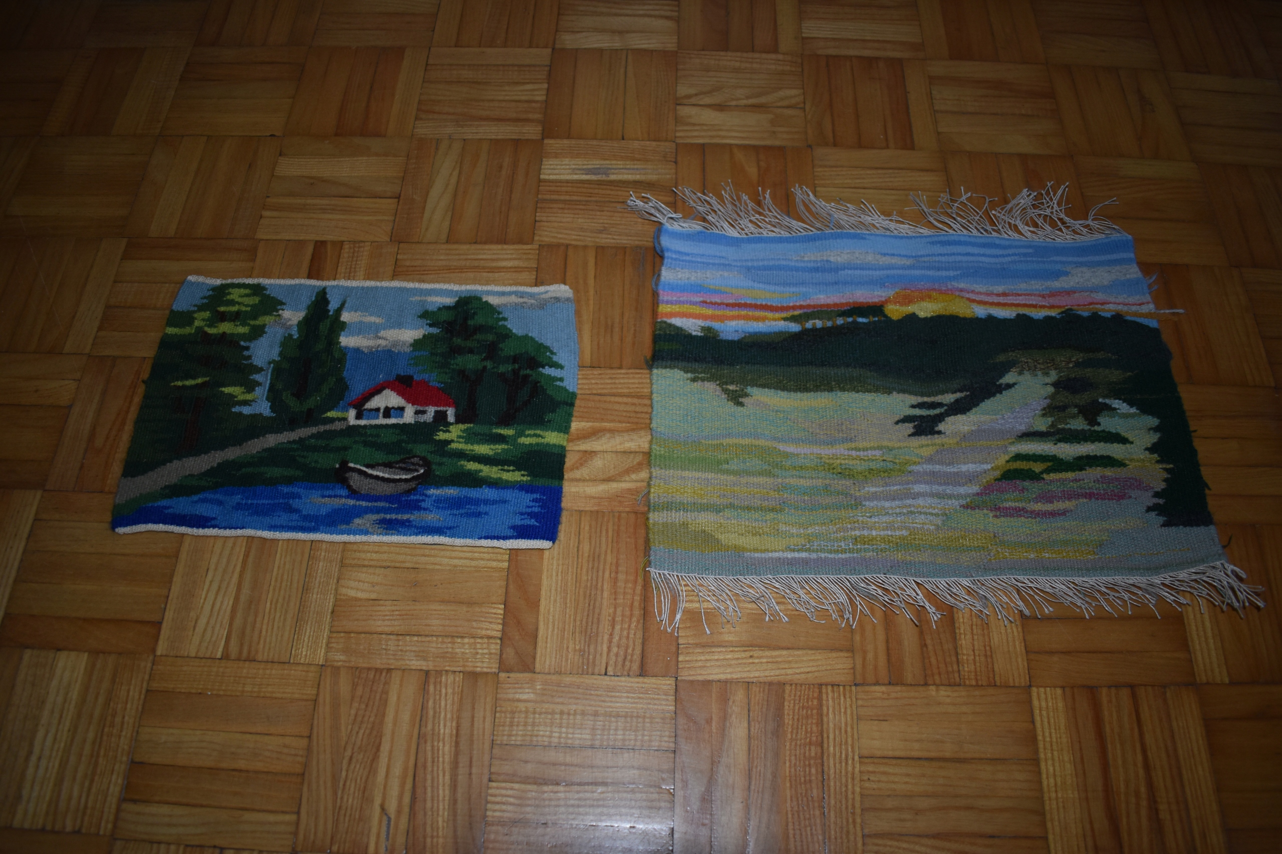 На наступному аукціоні пропоную вашій увазі оригінальний скандинавський комплект з двох килимів, виготовлених з вовни найвищої якості, складного ручного плетення! Килими, виткані в 1970-х роках
