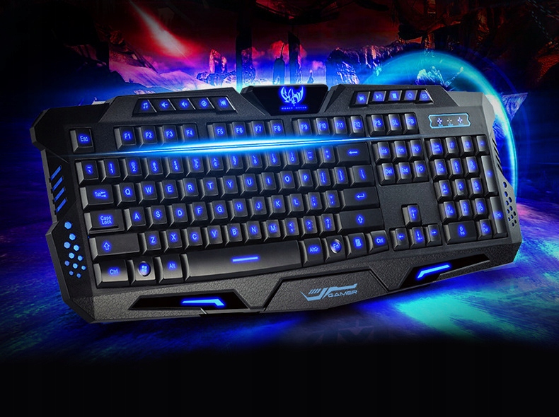 Ігрова клавіатура з підсвічуванням кнопок. Світиться оптична миша. Світлодіодна панель з підсвічуванням. Набір був розроблений з думкою про геймерів - оснащений підсвічуванням, яке дозволяє безпроблемно використовувати навіть вночі. Предмети упаковані окремо, кожен продукт має власну упаковку.