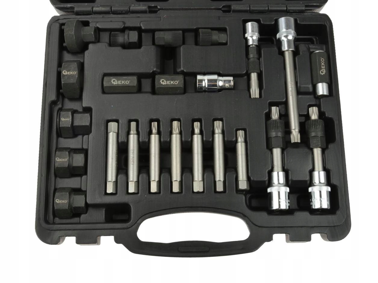 Набір гайкових ключів для монтажу та демонтажу генераторів. Ключі виготовлені з високоякісної хром-ванадієвої сталі CrV, що робить їх міцними та стійкими до пошкоджень. Ключі дозволяють одночасно відкручувати гвинт кріплення шківа (за допомогою відповідної насадки) і утримувати шків з муфтою (за допомогою спеціального гнізда).