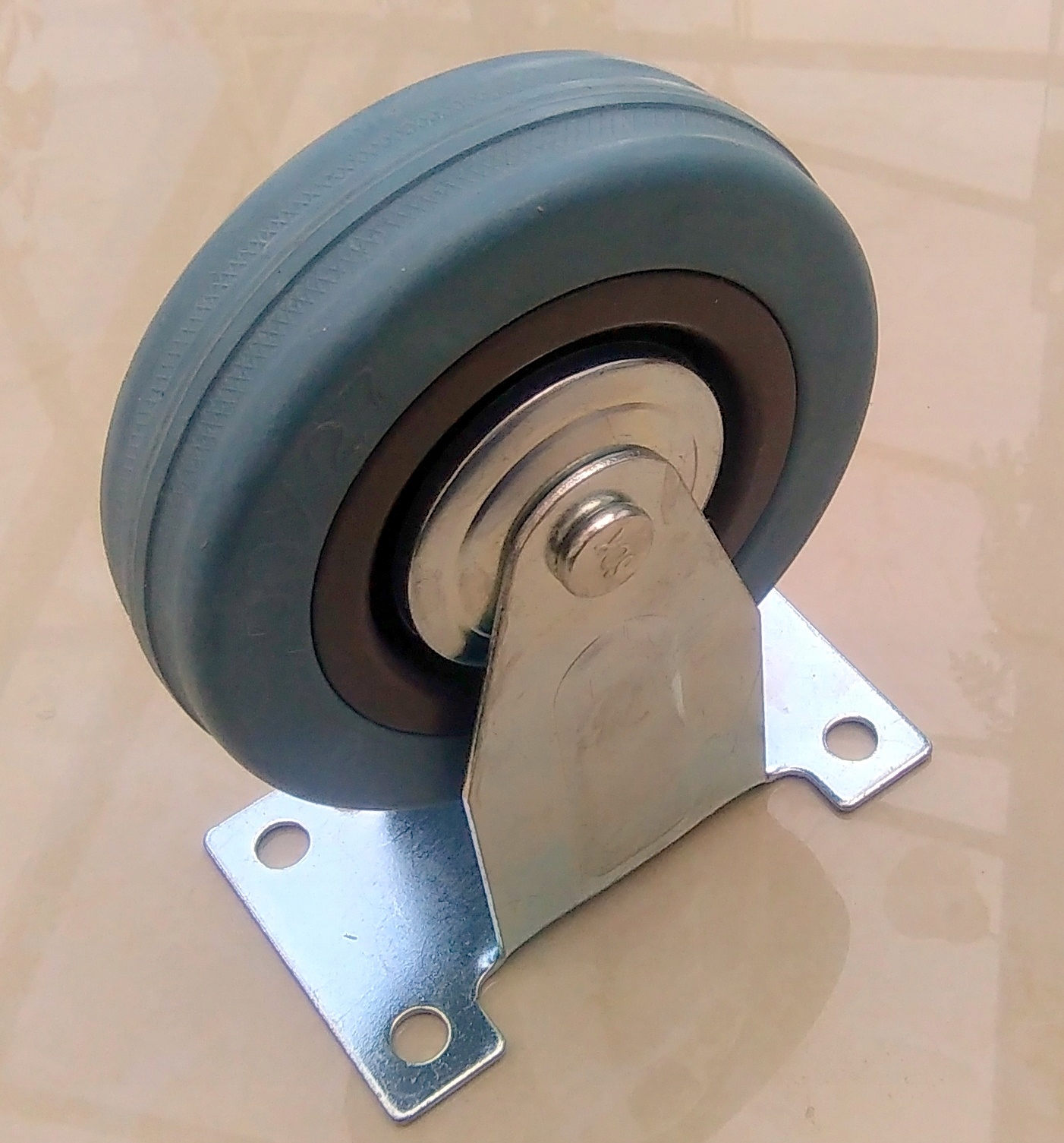 Колеса, встановлені на т.зв. Пластина являє собою комбінацію універсальної вилки з пресованого сталевого листа і колеса з поліпропіленовою втулкою і шиною з сірої немаркої гуми. Поворотна головка вилки має подвійні підшипники. Всі металеві елементи комплекту покриті антикорозійним хромоцинковим покриттям. Гальмо блокує колесо та голову.