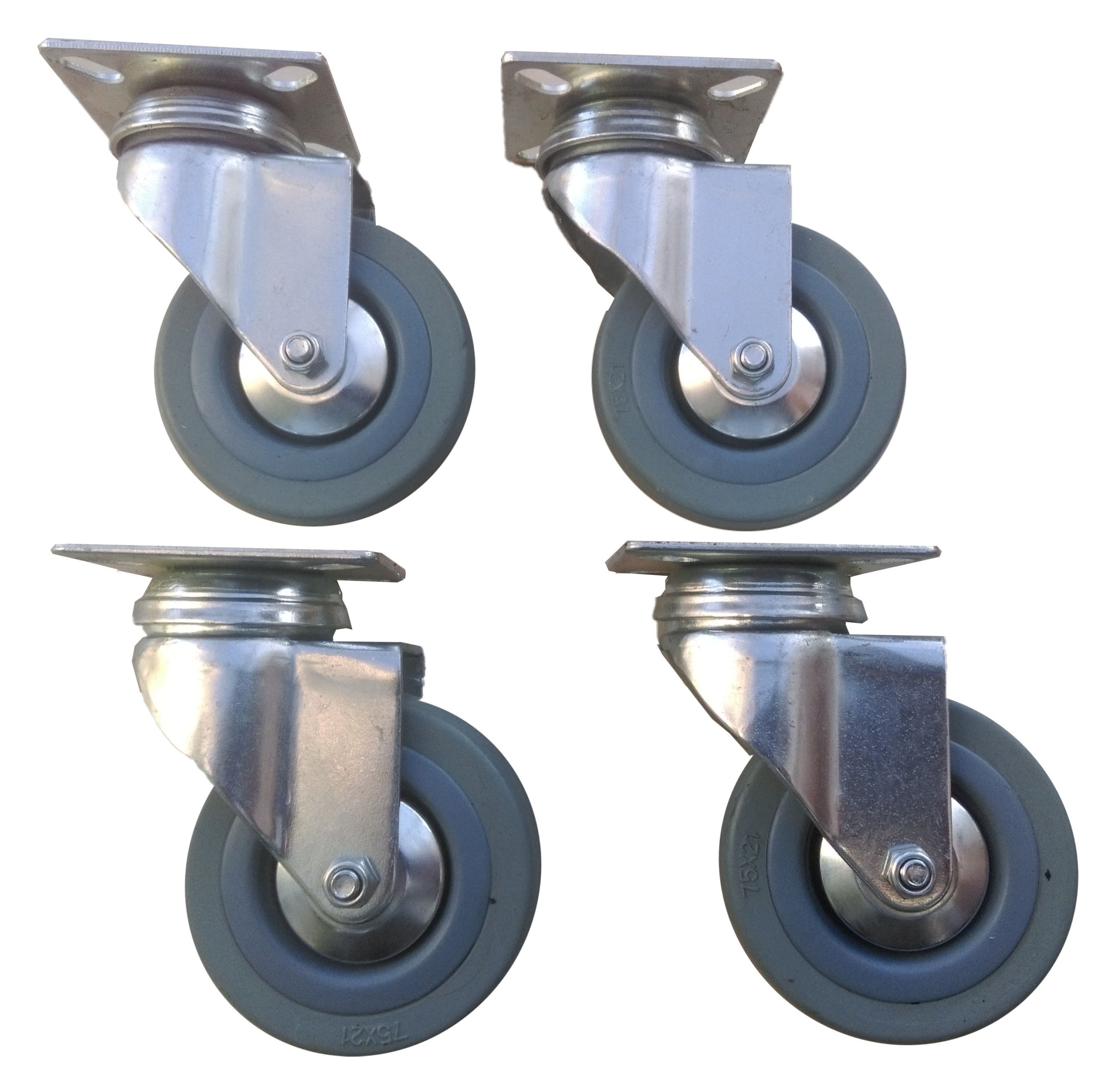 КОМПЛЕКТ КОЛІС 4 ШТ. FI 75 ММ З ПЛИСТОВИМ ГАЛЬМОМ.