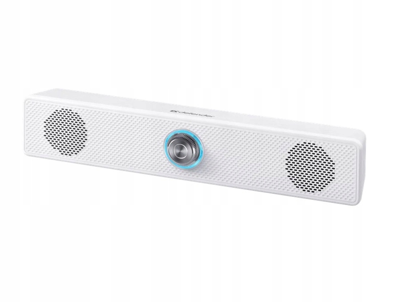 Комп'ютерна звукова панель зі світлодіодним підсвічуванням для регулювання гучності. Гумові ніжки запобігають ковзанню по поверхні столу. Гучність звуку регулюється за допомогою вбудованого перемикача.