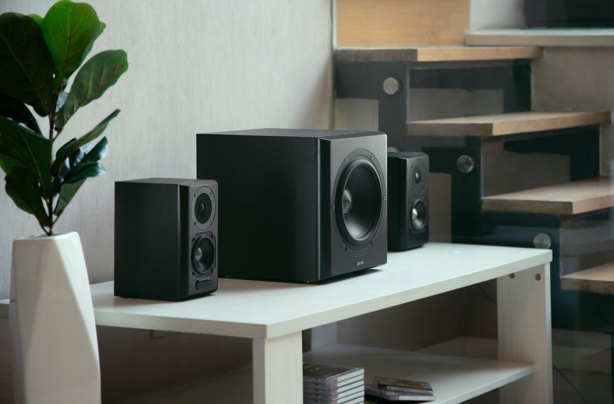 Edifier S351DB — остання активна акустична система 2.1, запропонована цим виробником. Комплект оснащений сабвуфером з 3,5-дюймовою алюмінієвою діафрагмою і титановими купольними твітерами. Набір генерує до 150 Вт середньоквадратичної потужності, що перетворюється на потужний звук.