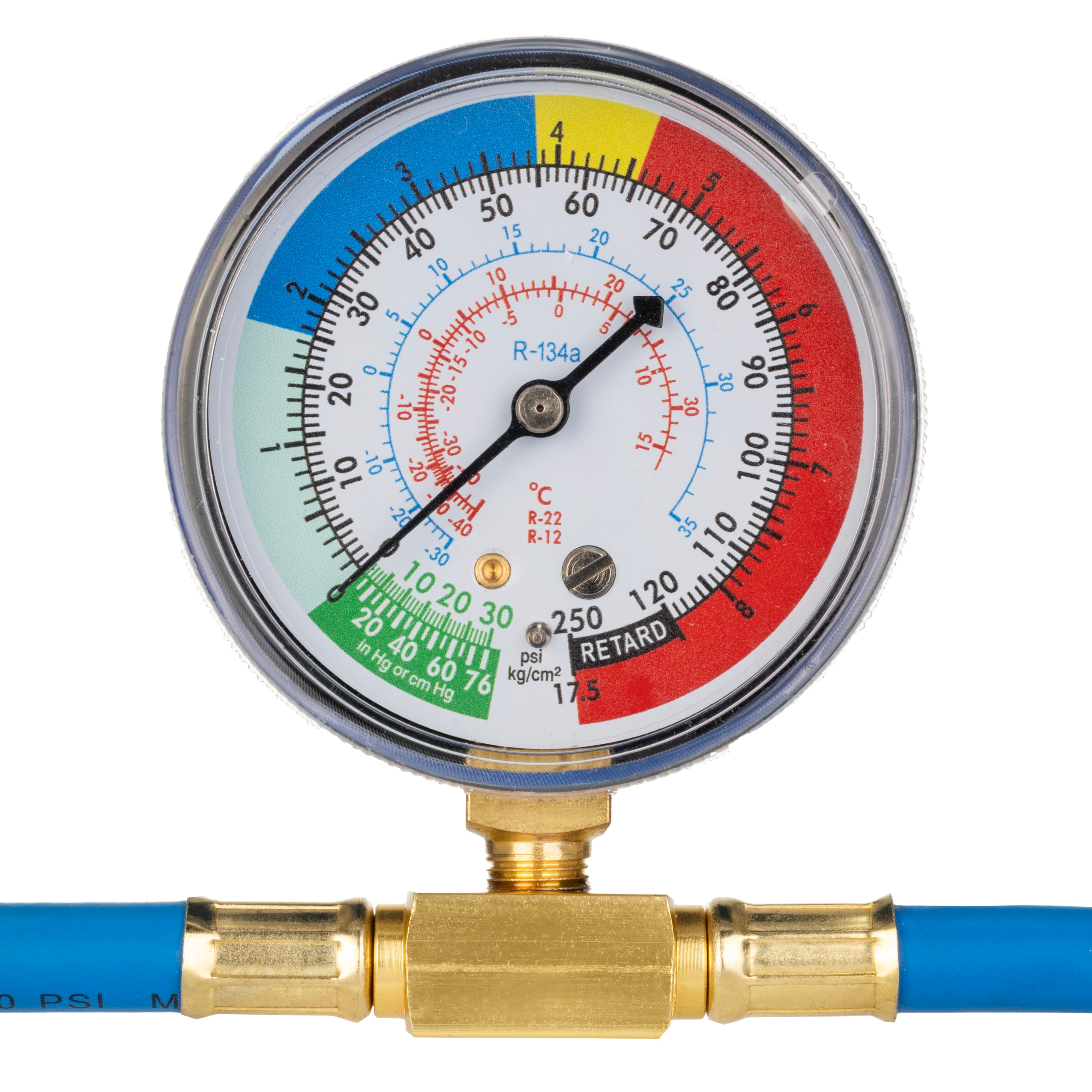 9. Зупиніть наповнення, відкрутивши ручку на клапані - як описано в пункті. 1, коли манометр показує 25-55 psi (синє поле)
