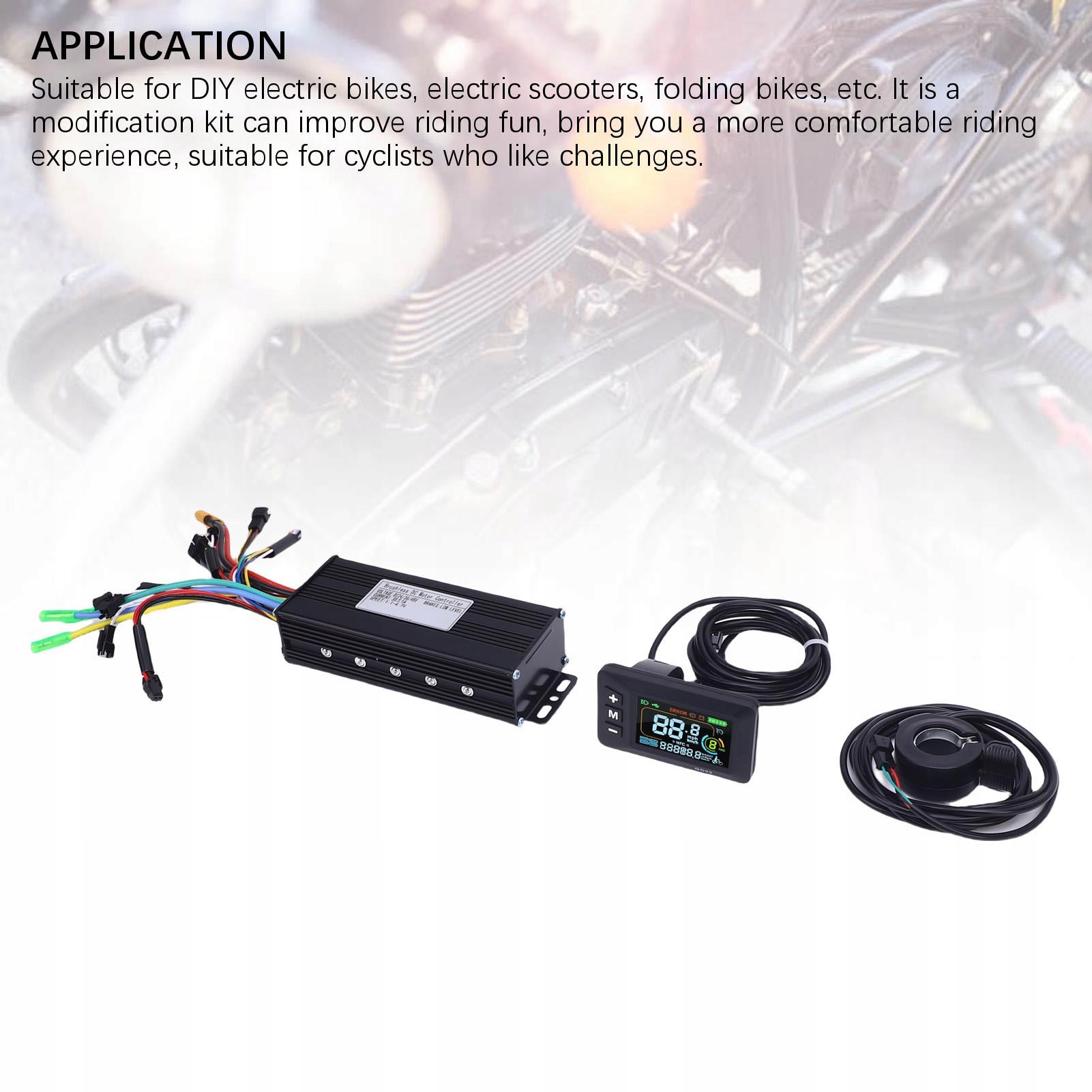 4. Застосування: підходить для саморобних електричних мотоциклів, електричних скутерів, складних мотоциклів тощо. Цей набір для модифікації може покращити задоволення від їзди, забезпечити більш комфортний досвід їзди, підходить для велосипедистів, які люблять виклики.