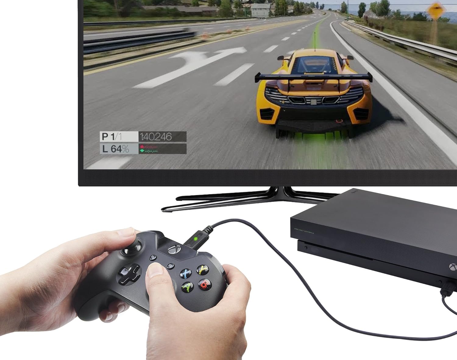 - Xbox One, Xbox One S і Xbox One -A на USB Micro; Світлодіодні індикатори для заряджання (червоний) і повного заряду (зелений).