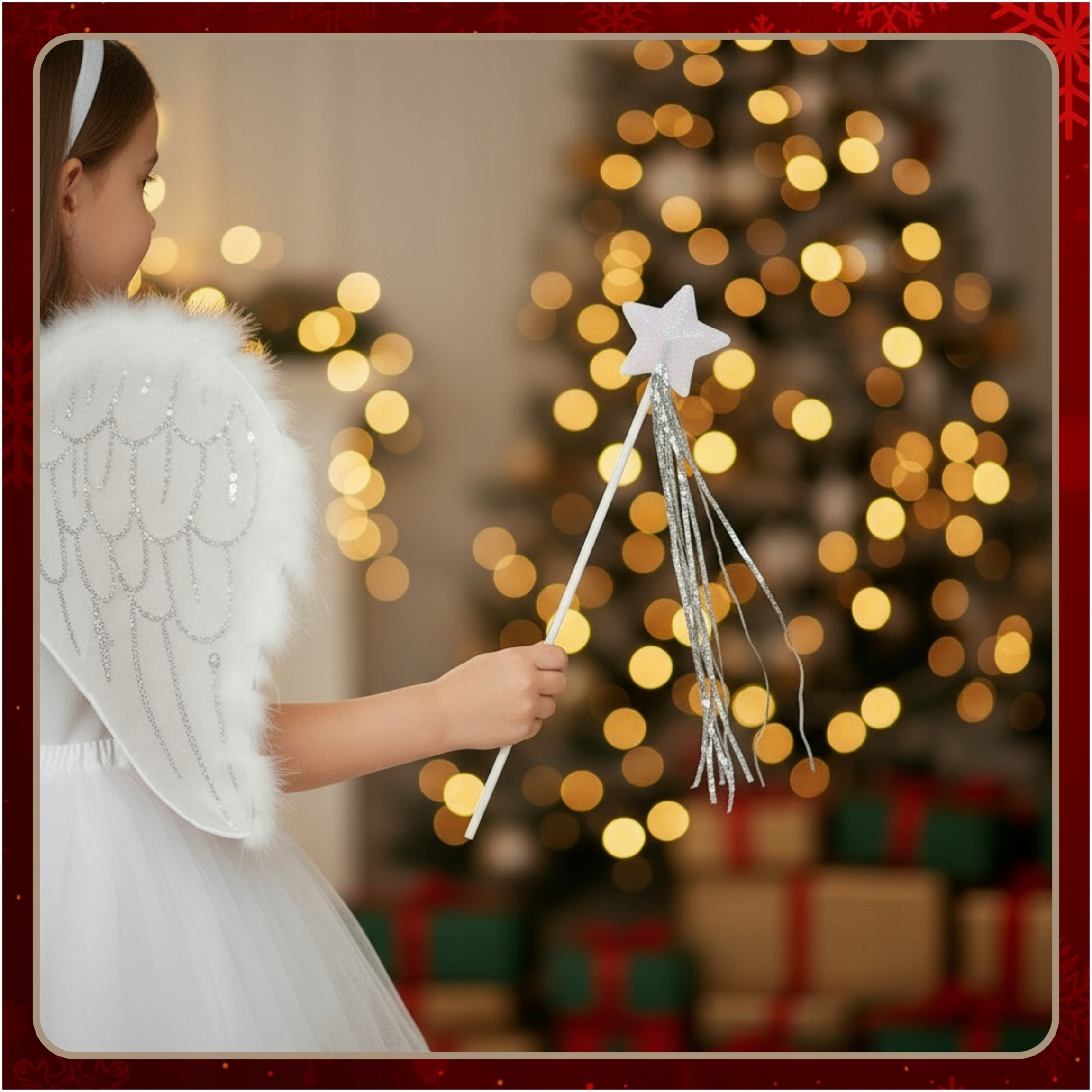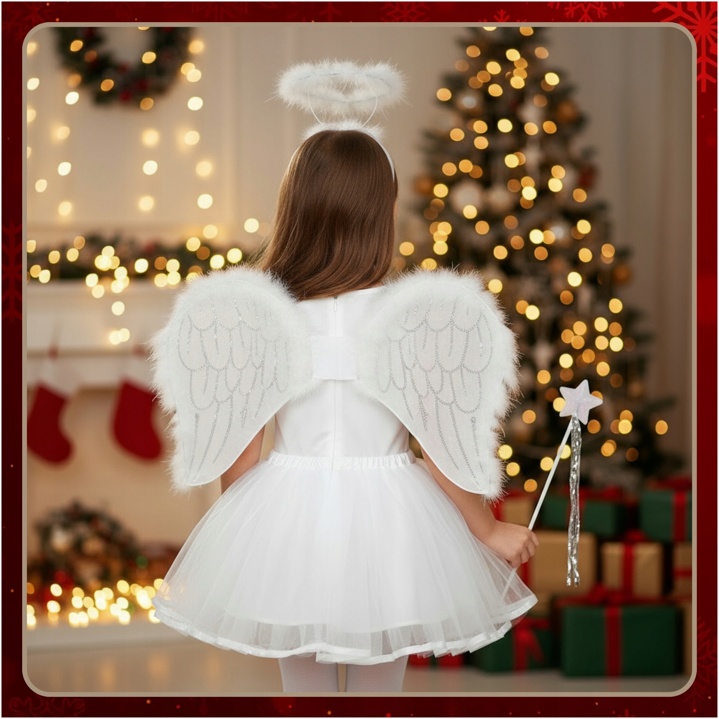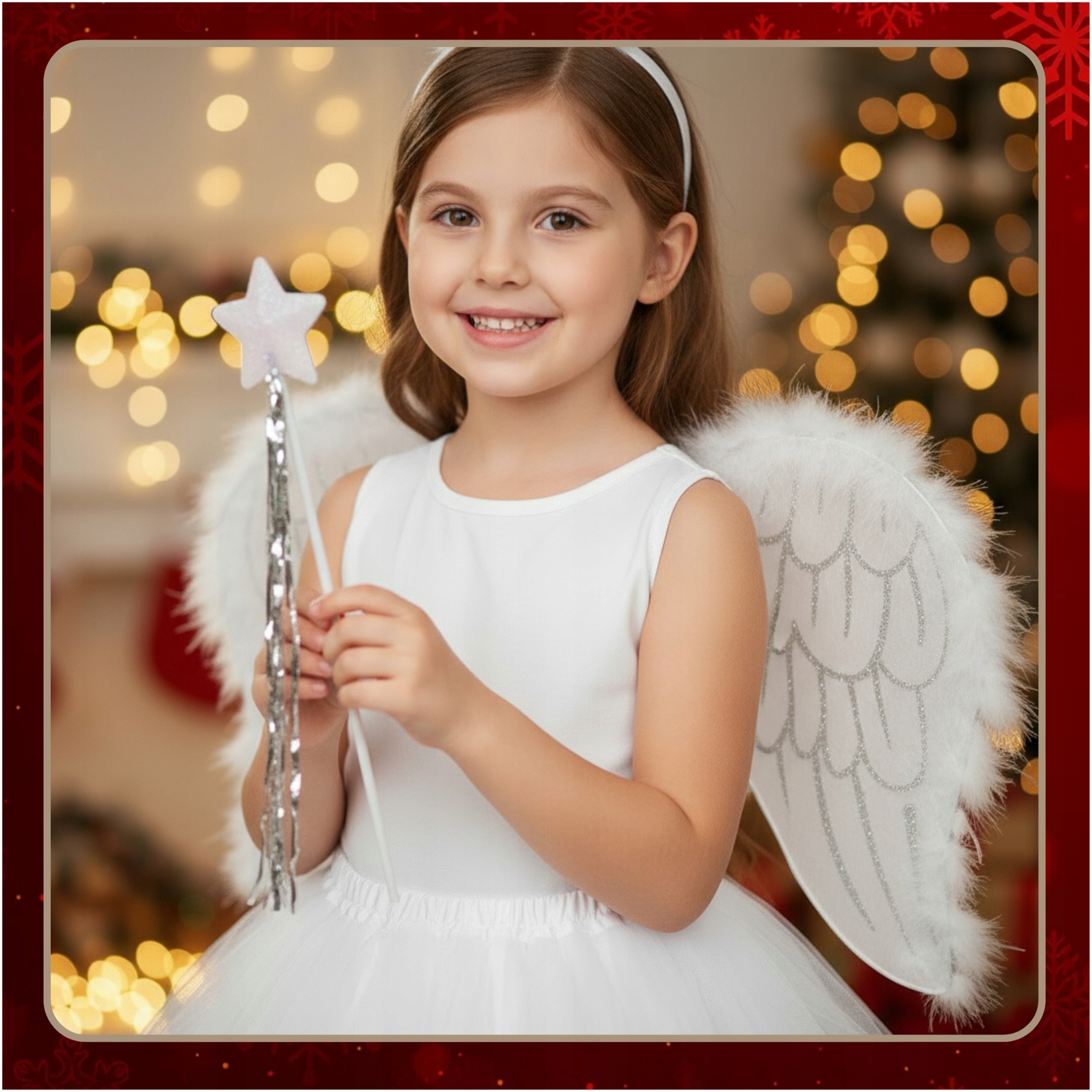 ✔️ Шкільні та дитсадкові вертепи Завдяки легким матеріалам, реалістичному пір'їнці та повній комплектації (крила, німб, паличка) дитина виглядає як справжній ангел, а вбрання не сковує рухів під час вистави.