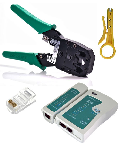 МЕРЕЖЕВИЙ КОМПЛЕКТ – обтиск КАБЕЛЮ RJ45, ТЕСТЕР КАБЕЛЮ RJ45, КАБЕЛЬНИЙ НІЖ ТА 50 РОЗ’ЄМІВ RJ45