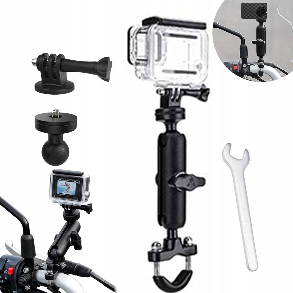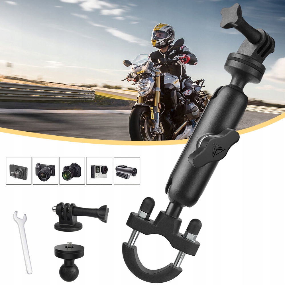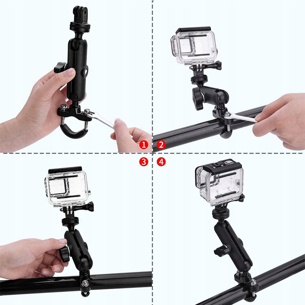 Кріплення для мотоциклетної камери за допомогою інструментів легко встановити. 2 гвинти використовуються для кріплення кріплення до керма, а 1 гвинт використовується для регулювання кута. Тримач можна прикріпити до керма або круглих трубок діаметром від 19 мм до 33 мм, наприклад, підсідельного штиря, велосипедного керма, тренажерів, лижних палиць тощо.