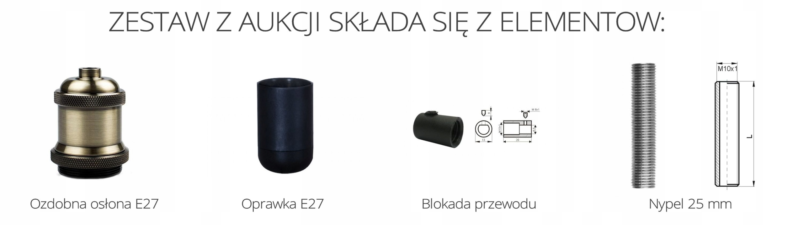 - Включено: e27 Чорна розетка, 25 мм соска, муфта, декоративна обкладинка E27