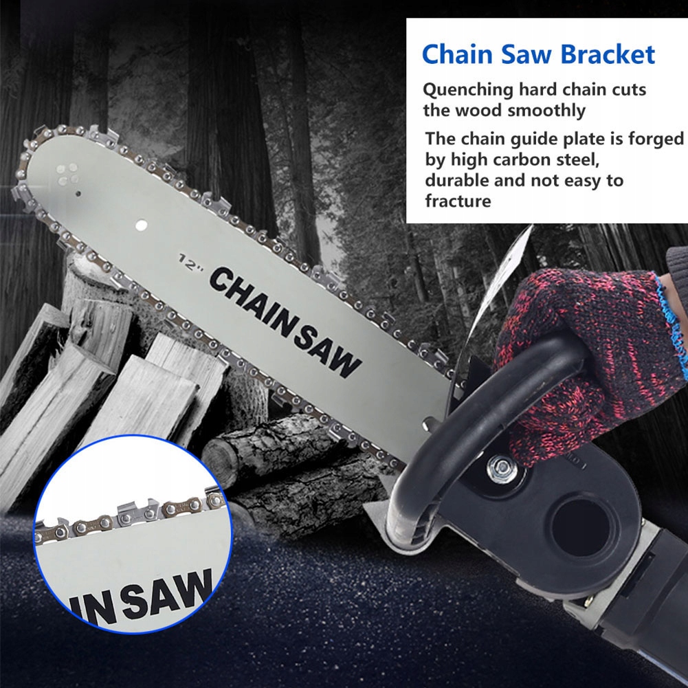 Функція:1. 1. Цей продукт дозволяє приєднати ланцюг до вашої кутової шліфувальної машини та перетворити її на електричну ланцюгову пилку.