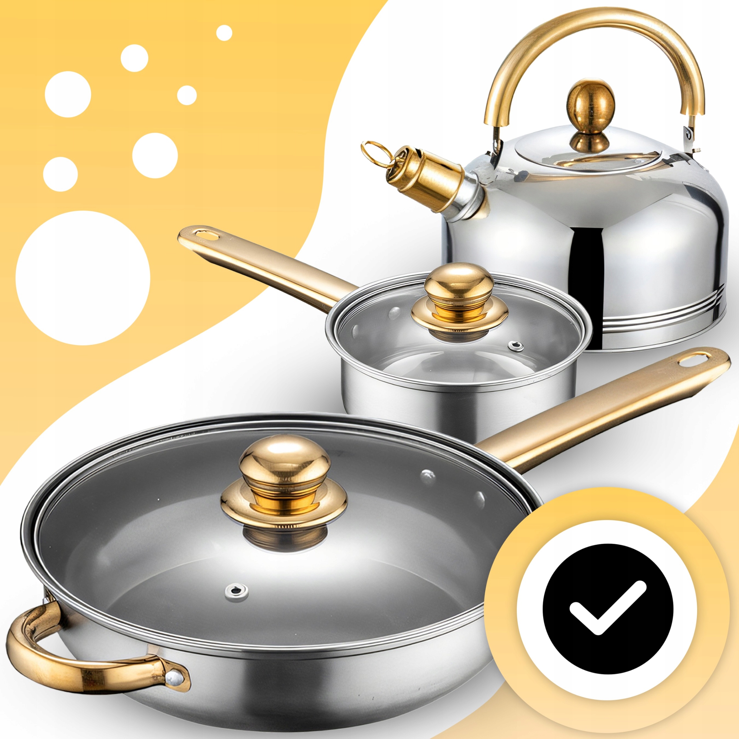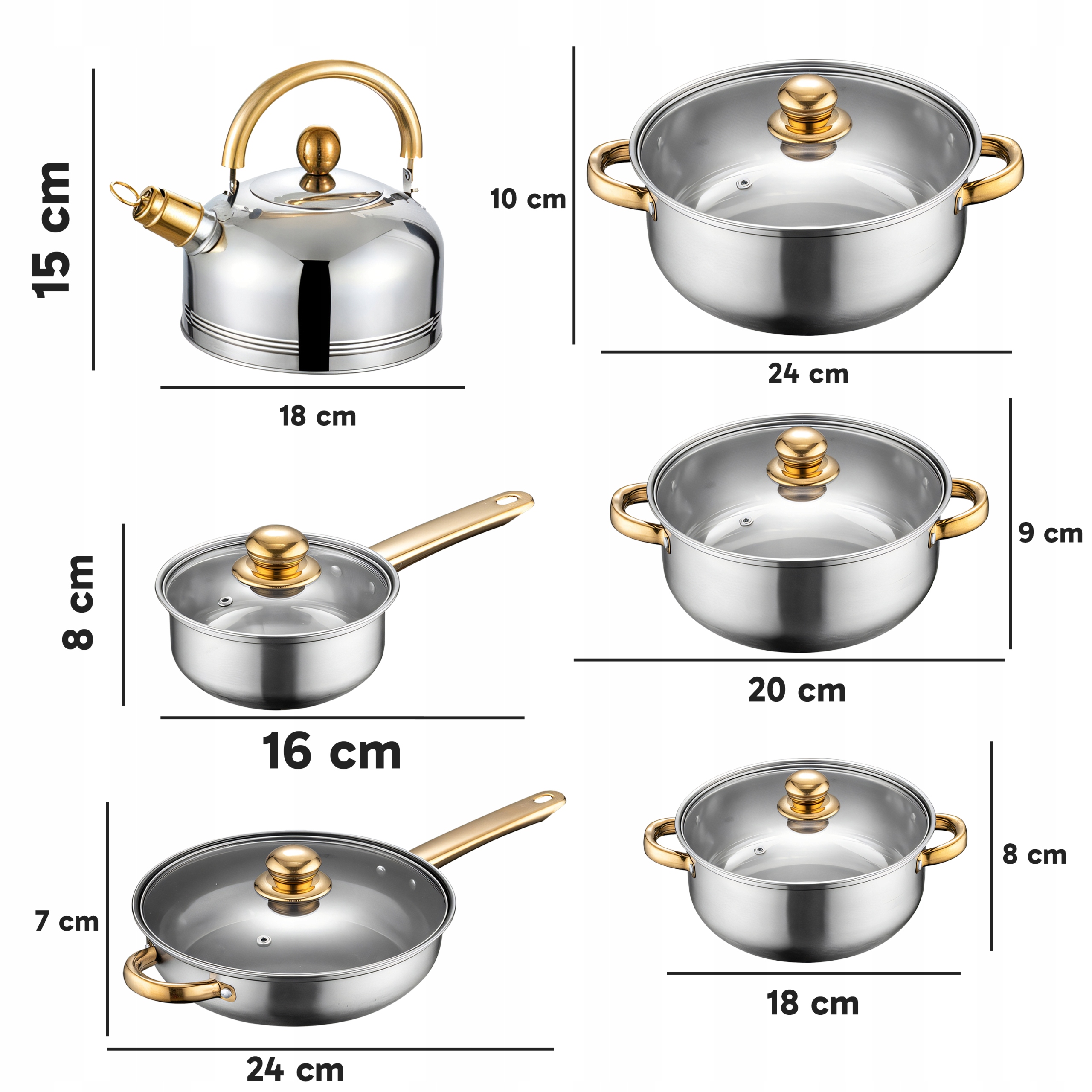 ✍️ Large set ☺️ The ability to use on a gas, ceramic, halogen stove ✏️ original design with golden elements ✉️ high quality workmanship ♥ ♥ ♥ ️ durable design ♠ ️ ideal as gift ♣ ️ Довговічність протягом багатьох років ♦ ️ універсальність використання ☀ Зручність та зручність використання - різні розміри ⭐ нержавіюча сталь ☺ посудомийна машина ♦ ️ сертифікат CE ♥ ️