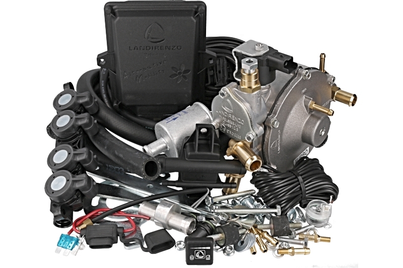 Набір Omegas EVO з послідовним впорскуванням газу в паровій фазі Landi Renzo, призначений для чотирициліндрові двигуни з багатоточковим уприскуванням бензину.