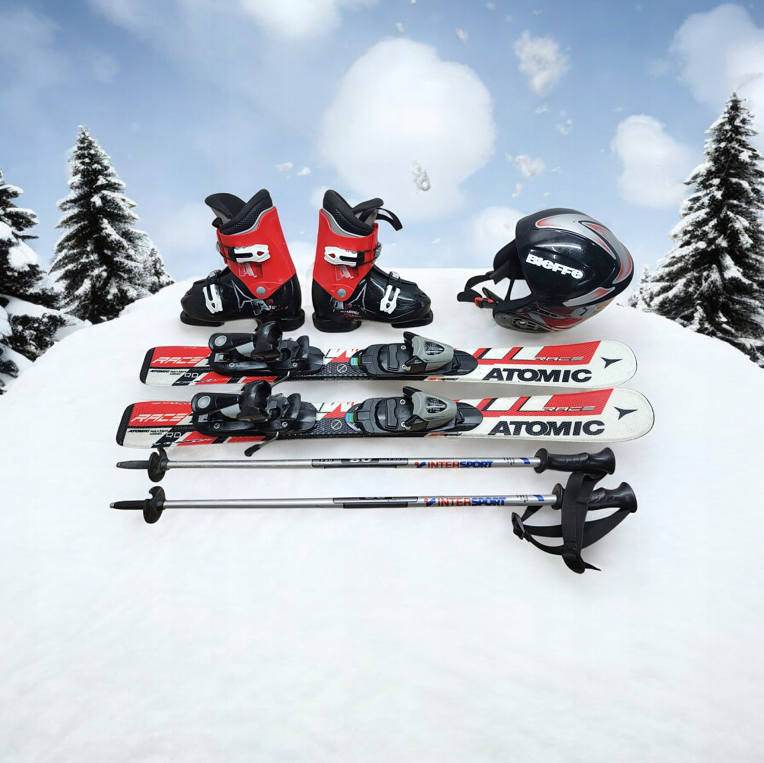 КОМПЛЕКТ Лижі Atomic 90 см + черевики 28 палиць + шолом безкоштовно